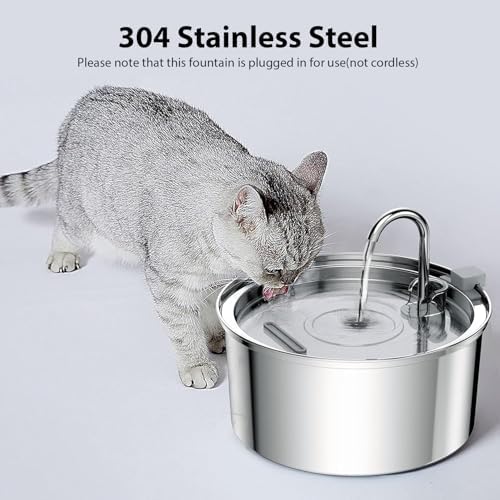 304 Stainless Steel: The cat water fountain is made of 304 stainless steel, and more durable and corrosion resistant. BPA-free and dishwasher safe, easy to clean. Double Filtration System: Equipped with activated carbon filter and pre-filter sponge, the automatic cat and dog water fountain can provide your pet with pure drinking water and keep healthy. 3.2 L/108 Oz Large Capacity: The capacity of water fountain is 3.2L, and the high and low water level lines are marked in the container, and the effective volume is more than 3L, very suitable for multi-pet families. Ultra-Quiet: The 1.5W pump is super silent when running, keep it below 20db, only the sound of water flow can be heard, even if it runs at night, it will not affect your sleep. Encourage Drinking : This cat water fountain is equipped with a faucet and spring surge modes which match Habits of drinking water under the tap of cats, dogs. The dynamic water flow helps attract pets to drink. After-Sales Service: Tomxcute offers a 2-year protection for the pump. If you experience any issues, please don't hesitate to contact us for a replacement. Additional parts can be purchased at our store. #4,329 in Pet Supplies ( ) #58 in