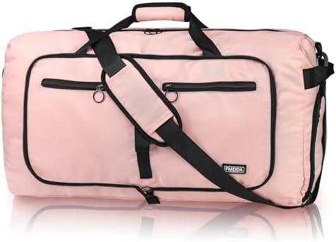 Fmeida 65L Duffle Bag with Shoes Compartment, Foldable Travel Duffel Bags for Men Women, Large Packable Travel Bag Water Repellent & Tear Resistant (Black)