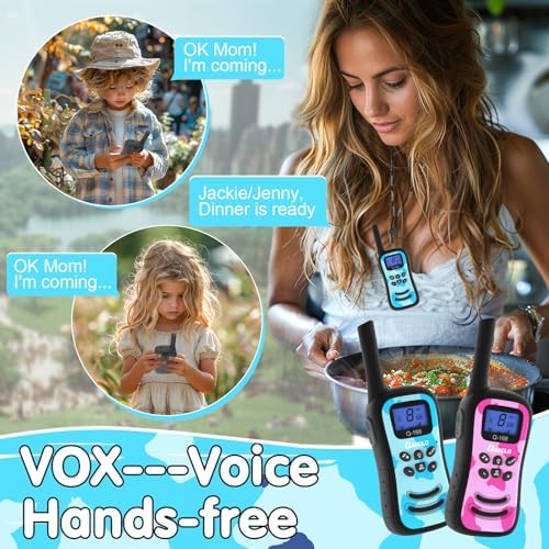 【Colorful Camo Toys】Qniglo's camouflage walkie-talkies designed specifically for children. The colorful colors are loved by children and adults alike. As an interactive toy for children, it adds unexpected fun. 【22 Channels】Qniglo walkie talkies have 22 channels and 99 sets of privacy codes. Up to 2178 privacy channel combinations allow for undisturbed calls between you and your partners. Multiple walkie-talkies are allowed to talk to each other under the same channel. 【Rechargeable】 Rechargeable walkie talkies support USB charging, you can charge it anywhere. Upgraded to USB-C charging protocol, which greatly speeds up charging.You can save some money on disposable batteries. 【VOX & Clearly】Walkie talkies for kids have Voice and Sound Activation(VOX) system. With three different sensitivity levels, you can freely choose according to your needs.Upgraded with automatic noise reduction technology and greater penetration. Adjustable volume speakers help kids hear clear sound even in noisy environments. 【Easy to Use】The ergonomic shape of the handle grants an easy grip. The portable walky talky with a simple and speedy setup within 10s to enjoy crystal clear communicating sound. Without any problem for kids aged 3. 【Flashlight】Qniglo walkie talkies have blue LCD screens to provide you with enough visibility at night to clearly display the contents of the walkie talkies. It is a explore toy for kids at night. 【Fun Play Range】Adopt gain antenna, stronger penetration and lossless transmission technology. Within the city, the range walkie talkies can reach a communication range of 0.5-1 mile and talk clearly. In open areas, the walkie talkies can communicate up to 3 miles. kids toys cater to children playing in various areas.